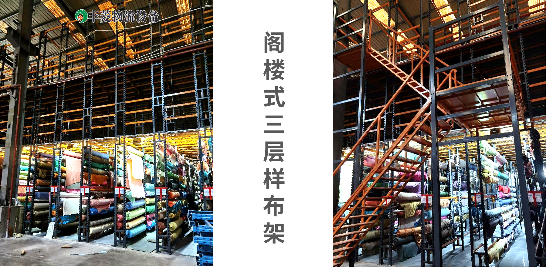 布料贸易仓储环节中,高位货架系统与样布架组合使用,形成了从大批量存储到样品展示的分层管理体系。阁楼式双层、三层样布架设计,在有限建筑面积内实现了样布存放量的倍数增加。
