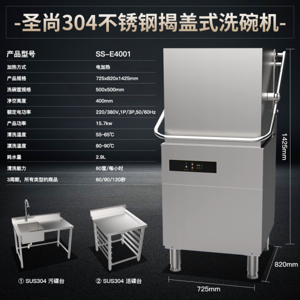 选揭盖式商用洗碗机看圣尚:清洁到位、