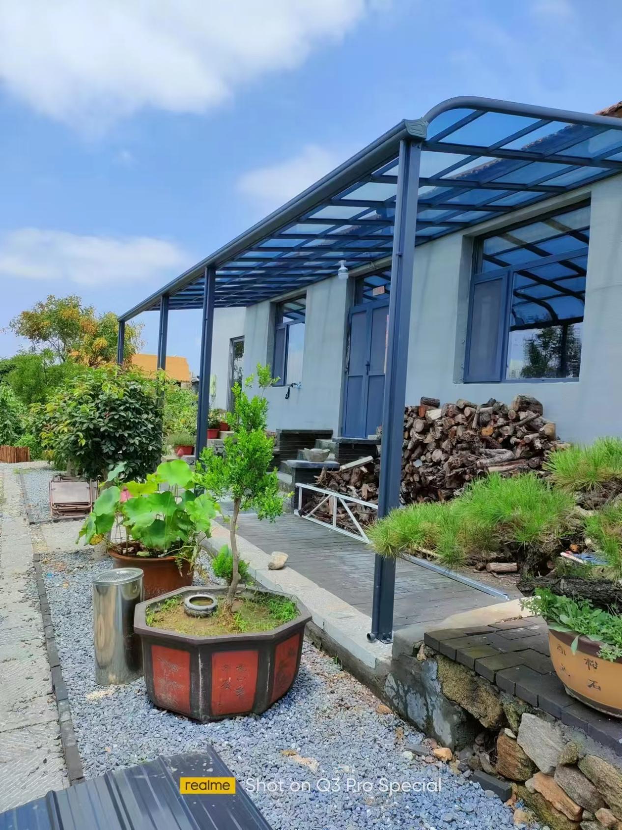 对于热爱园艺的人来说,铝合金雨棚下的空间更是理想的种植天地。你可以在这里种植各种娇艳的花卉和清新的绿植,为庭院增添一抹生机与色彩。雨棚能够为植物遮挡过强的阳光和暴雨,为它们提供一个相对稳定的生长环境。看着自己精心培育的植物在雨棚下茁壮成长,绽放出美丽的花朵,那种成就感和喜悦感是无法言喻的。