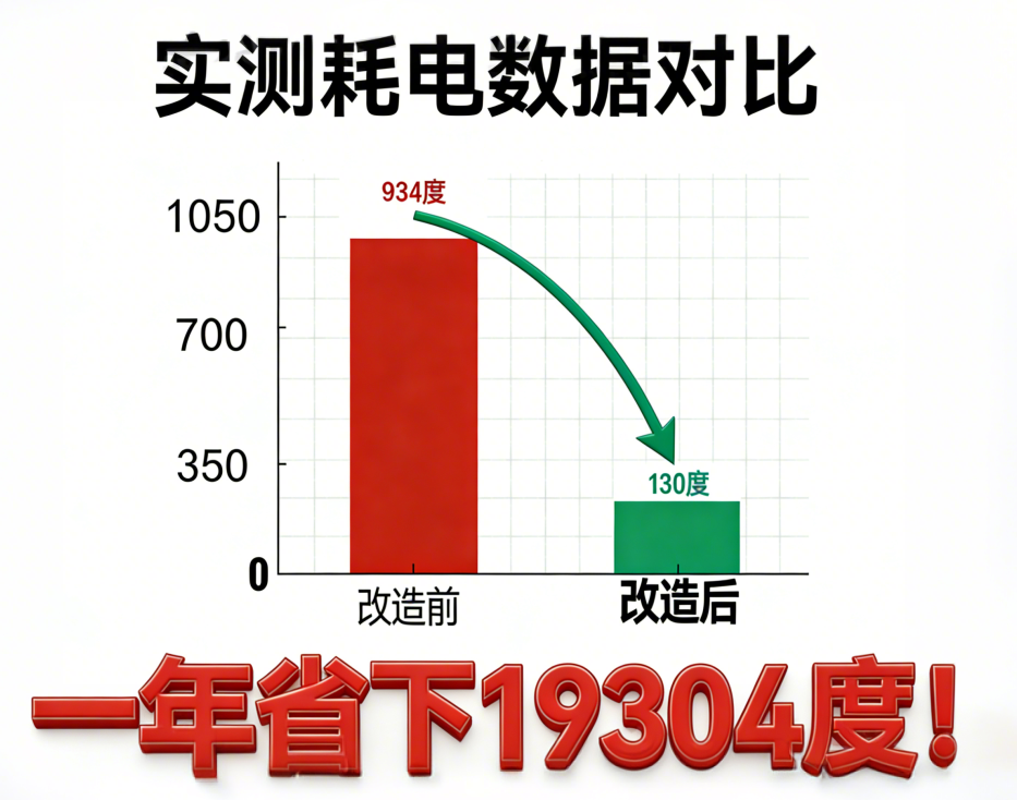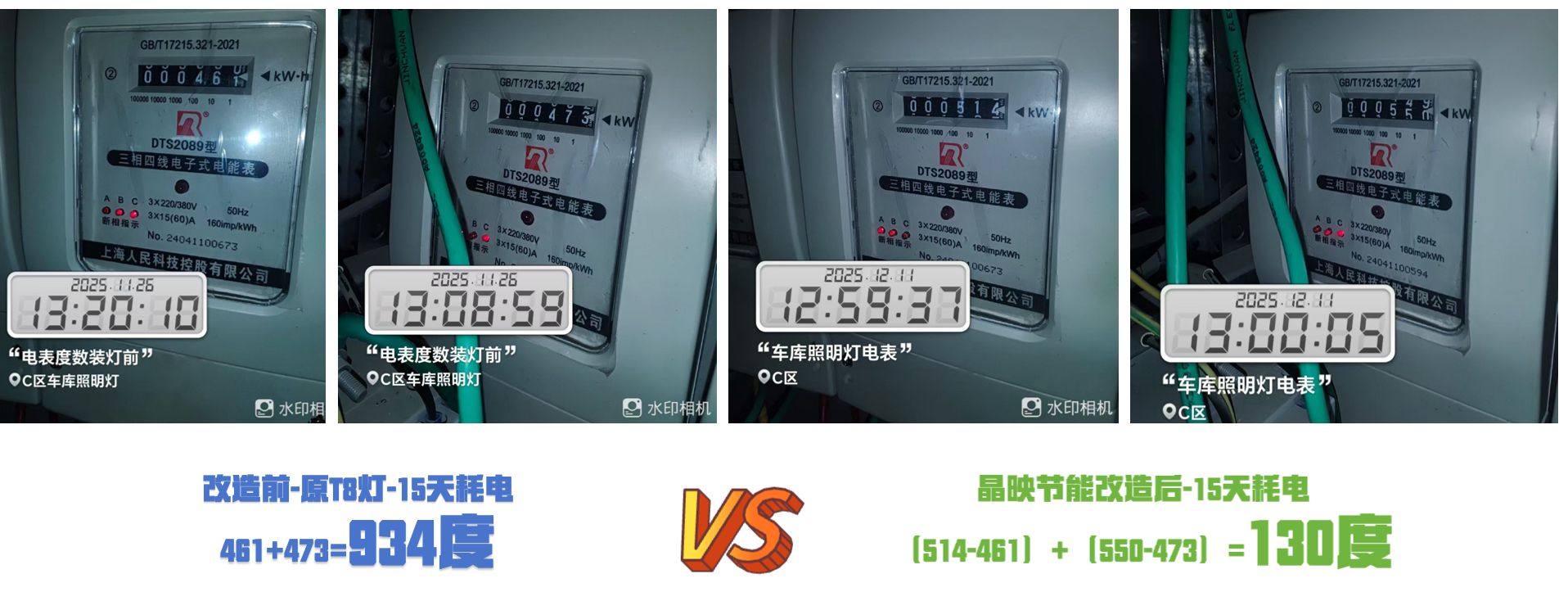 改造完成后,项目团队进行了为期15天的实地能耗监测,实测数据给出了有力的答案:改造前15天照明总耗电934度,改造后只耗电130度,单根灯管平均功率从18瓦降至2.33瓦,节能率高达87%!