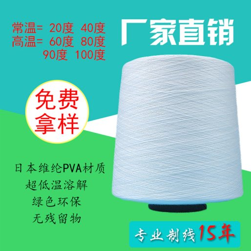 绣花**PVA水溶纱在分子设计上纯净性,采用特殊的纺丝工艺确保线径均匀、表面光滑,溶解后的产物完全水溶性,不会在绣花成品上留下任何痕迹。
