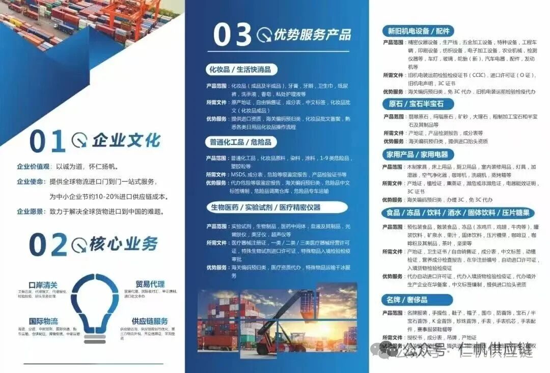 备注:仁帆服务涵盖:贸易代理,根据客户提供货物发票等信息代理制单,代付外汇,提供进口抬头资质,国际物流等门到门一站式服务,专属一对一定制物流方案,贴心服务。