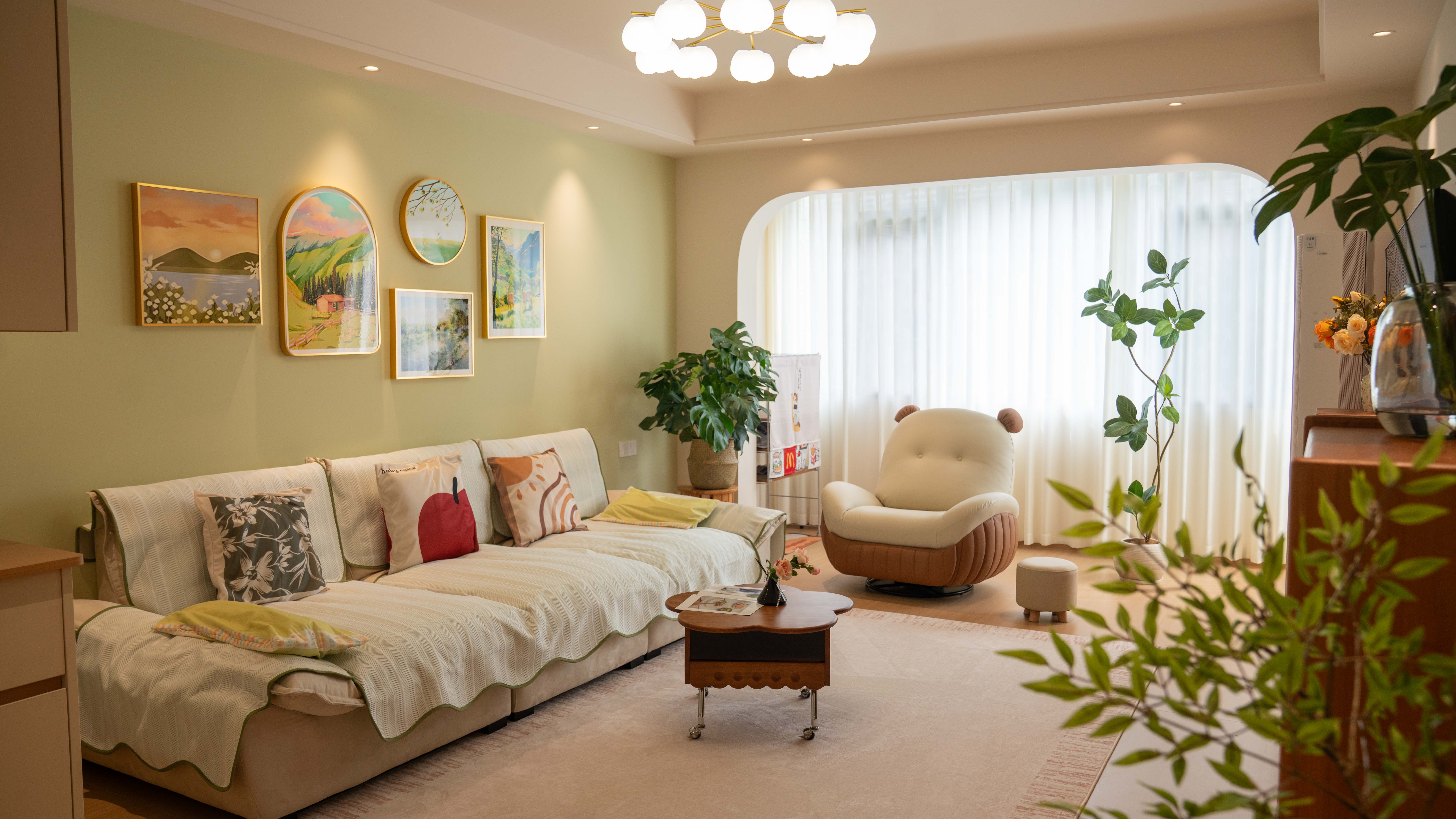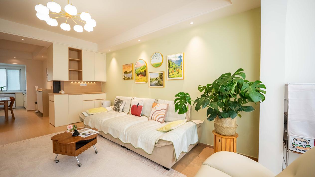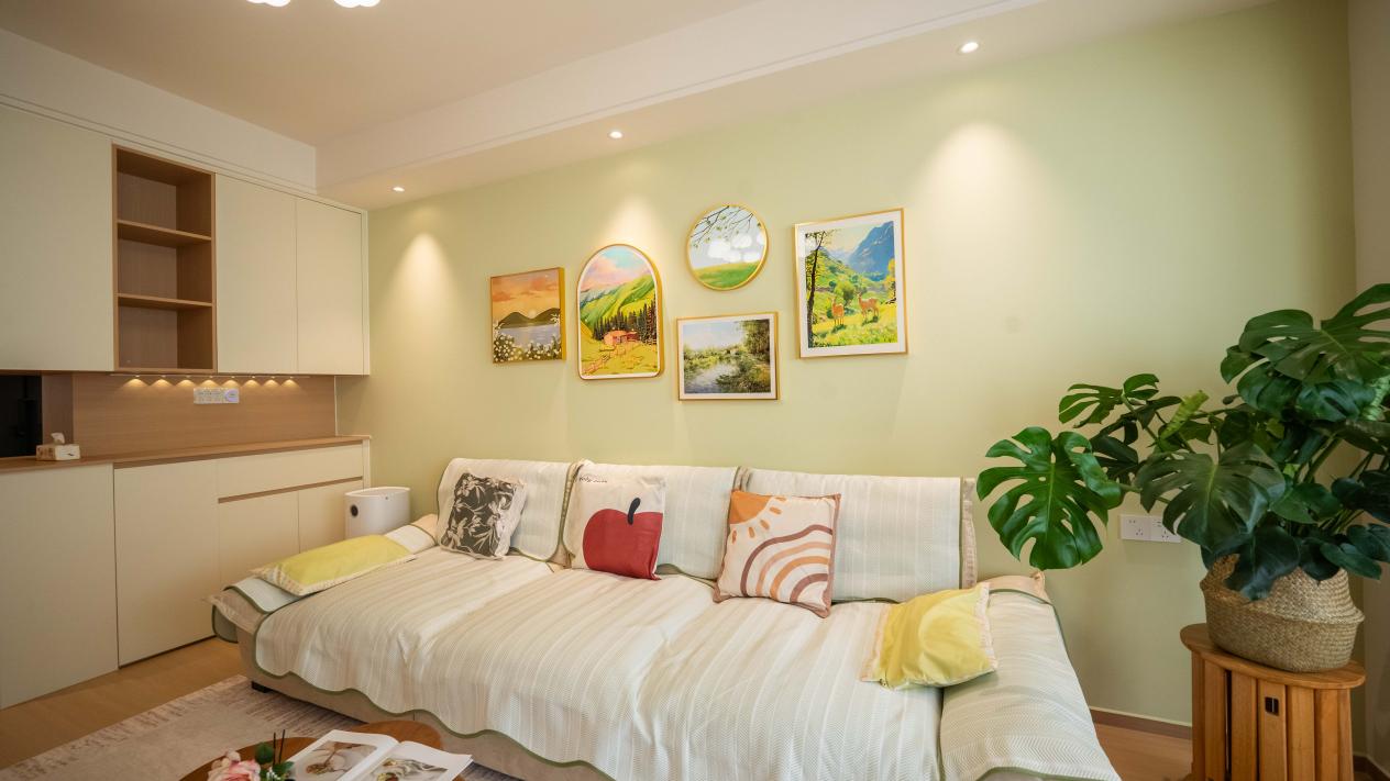 没有复杂的造型和浮夸的色彩,通过留白美学和绿植、挂画等软装点缀,让家充满了自然呼吸感。