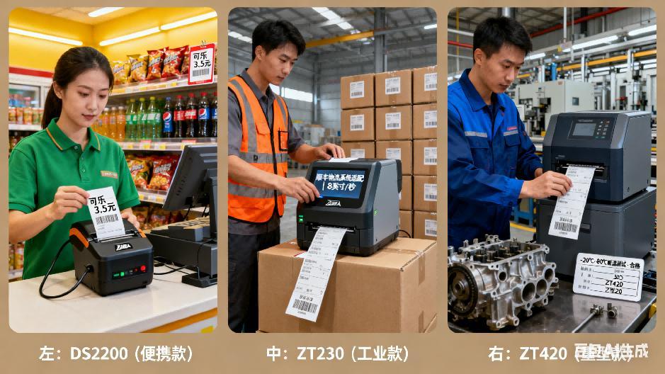 “不是所有斑马条码打印机都一样,得看你每天打多少标签、用在什么环境。” 斯迈尔电子设备事业部经理陈工,每次接待客户都先问三个问题:“单日打印量超500张吗?是在干燥办公室还是油污车间?标签要耐水耐摔吗?” 这正是企业选斑马条码打印机最容易踩的坑 —— 盲目买贵的工业款浪费钱,选便宜的便携款又满足不了需求。