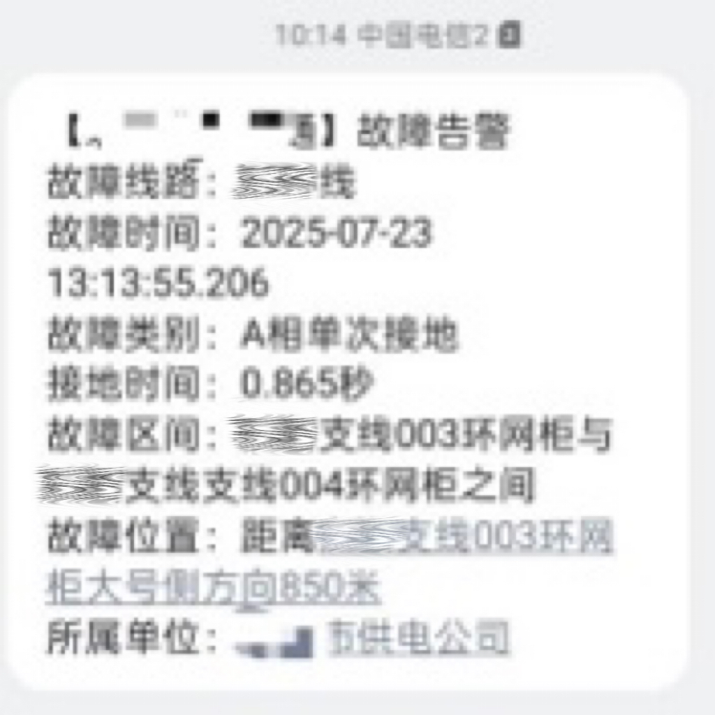 结合电流突变时刻的差异,系统首先锁定故障区间位于该支线003环网柜与004环网柜之间。随后,基于行波测距原理,通过精确计算行波传播时间差,终确定故障点,并至一时间向运维人员推送告警信息,明确故障位置与相关详情。