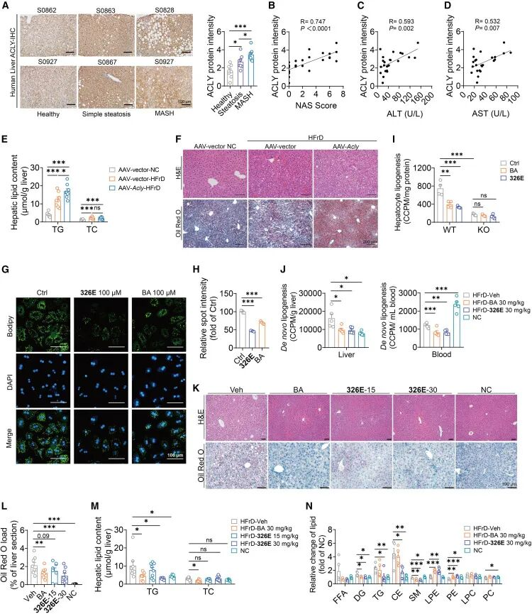 图1.肝ACLY与脂肪性肝炎发展和高碳水化合物诱发的脂肪肝相关。