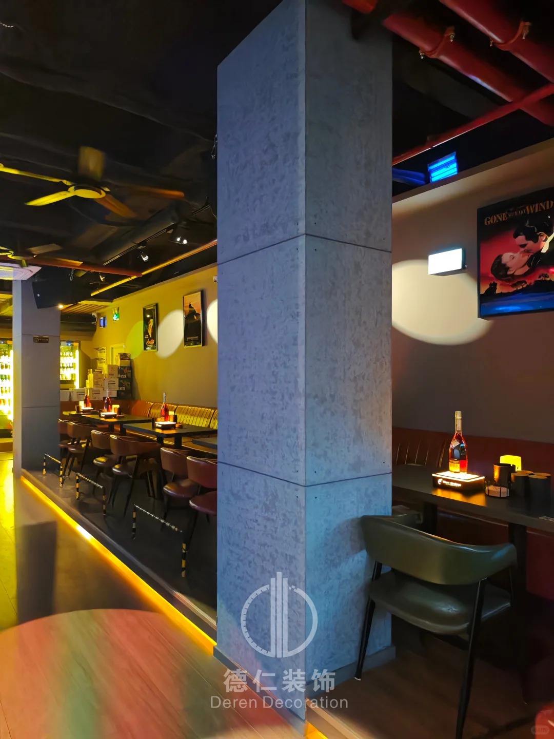 在酒、吧装修领域,德仁装饰擅长通过灯光、色彩、材质的组合营造特定氛围。其餐饮空间设计理念同样适用于酒、吧场景:从门头到洗手间强化主题叙事,通过灯光氛围控制(局部重点照明或动态光效)、色彩心理学应用(如暖色调营造放松氛围)、动线规划(顾客动线、服务动线、后勤动线分离)提升运营效率。