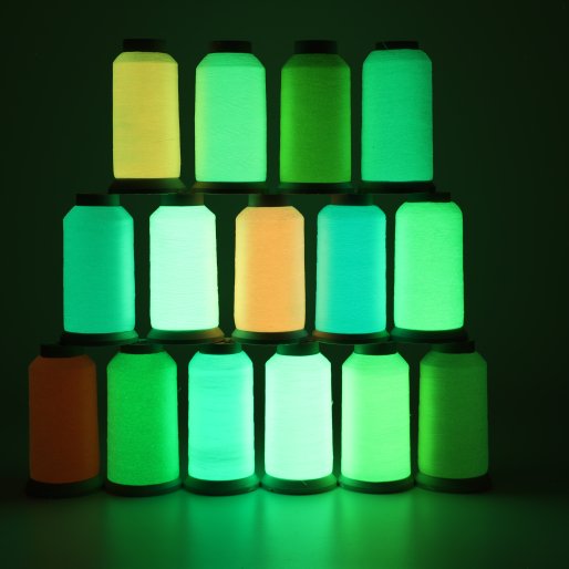 绣花夜光线在发光效果上提供黄绿色、蓝绿色等常见发光颜色,并根据亮度需求区分为普通夜光线和高亮夜光线两个等级。在日常外观方面,产品提供包括白色、浅粉、浅黄等多种颜色选择,确保在白天光线下与普通绣线无异,完美兼顾日常美观需求。
